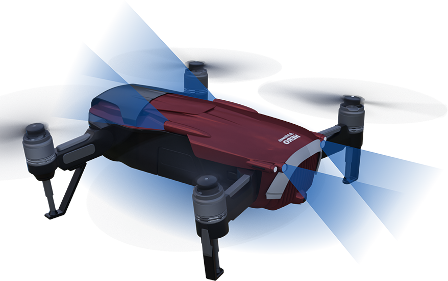 Forward and downward vision systems enable the Hero Drone to detect obstacles up to 30 meters ahead, allowing for protected flight around 30 to 40 kmph at a controllable attitude angle of 25°. Upward facing infrared sensors scan obstacles some feet above, adding protection when flying in enclosed spaces. And the extra layer of security that obstacle avoidance provides is ideal for pushing the limits of what is possible.